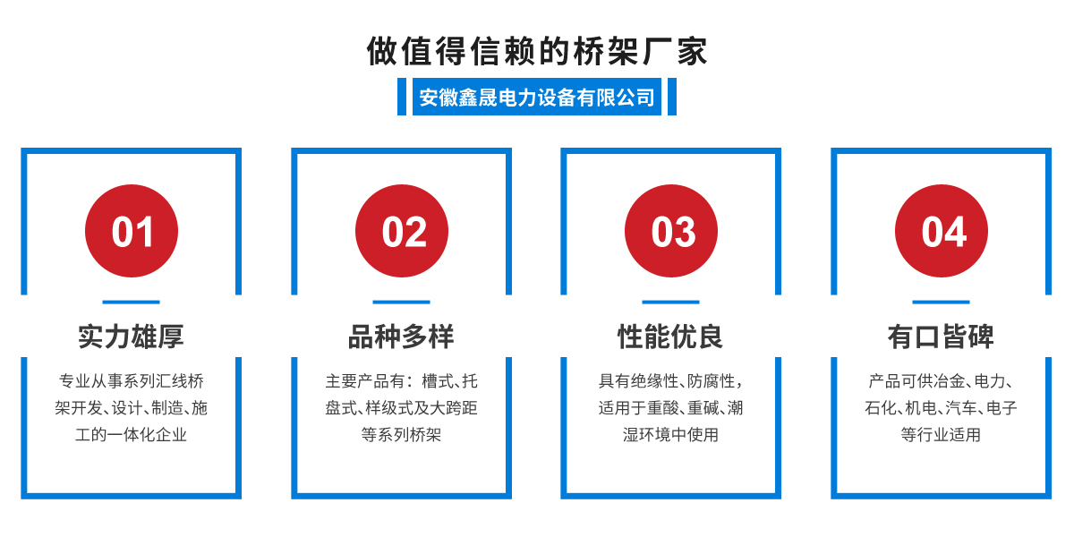 安徽鑫晟電力設備有限公司是專注從事系列匯線橋架開發(fā)、設計、制造、施工的一體化企業(yè),主要產(chǎn)品有:槽式、托盤式、梯級式及大跨距等系列橋架。產(chǎn)品選用冷軋或熱軋鋼板井對...